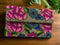 This beautifully crafted clutch bag features an intricate pattern of glass beads woven into the fabric, showcasing a timeless technique. This decorative art form was traditionally used in the creation of reticules, a type of drawstring purse.