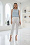 Plus Size White - Slimming Hand-Embroidered Trousers | Stretch Cotton with Elastic Waist Pants | Famaza Couture