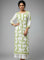 Chikankari kurti with green colour embroidery on white