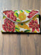 This beautifully crafted clutch bag features an intricate pattern of glass beads woven into the fabric, showcasing a timeless technique. This decorative art form was traditionally used in the creation of reticules, a type of drawstring purse.