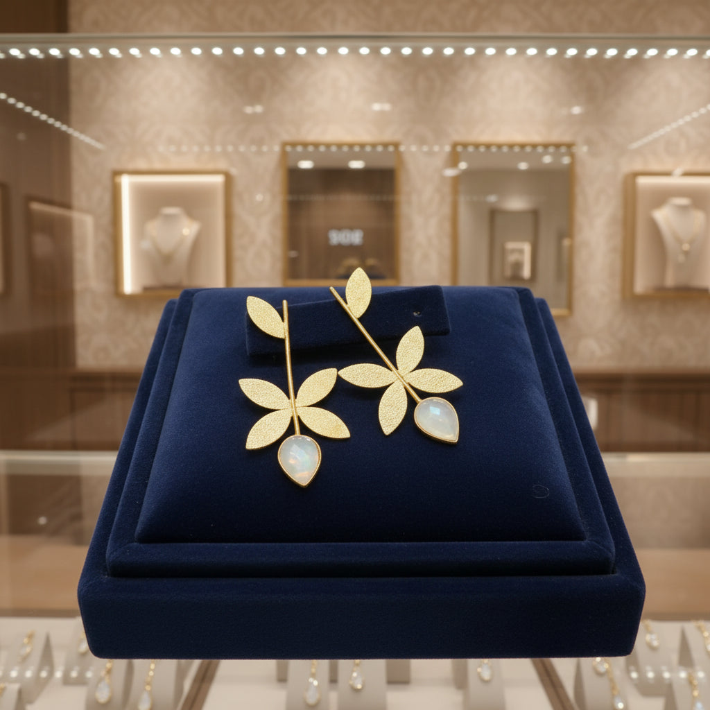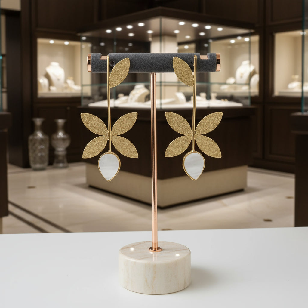 - Design: Delicate leaf-shaped drop (leaf motif) with mother-of-pearl panel; lightweight yet bold.