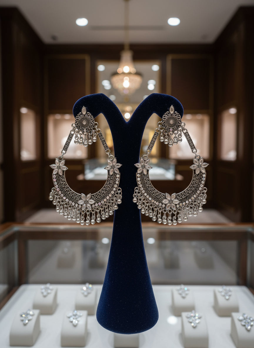 Bring heritage charm to every outfit. These Oxidised Round Bali Earrings feature intricate Bali-style detailing and an antique silver finish that pairs beautifully with both traditional and modern looks. Lightweight and comfortable, they’re perfect for festive occasions, weddings, parties or elevating your everyday ethnic-fusion style.