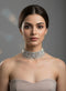 - Style Tip: Pair with a richly coloured saree, lehenga or an evening gown—deep jewel tones like emerald, burgundy, navy or classic black will let the gold & white contrast shine. Keep other jewellery minimal so the set remains the focal point.