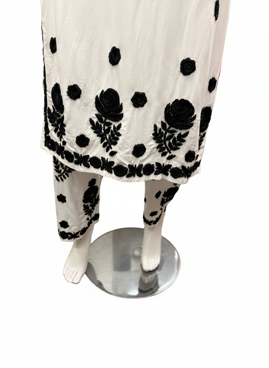 White Chikankari 2-Piece Palazzo Set – Black Embroidery