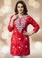 Embrace the timeless elegance of our hand-embroidered Lucknowi Chikankari Short Kurti. Crafted from breathable rayon fabric, this 30-inch tunic features delicate white floral motifs, offering both comfort and style. Perfect for casual outings, office wear, or festive gatherings, pair it with jeans or palazzos for a versatile look.