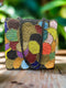 This beautifully crafted tote bag features an intricate pattern of glass beads woven into the fabric, showcasing a timeless technique.