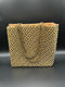 This beautifully crafted tote bag features an intricate pattern of glass beads woven into the fabric, showcasing a timeless technique.